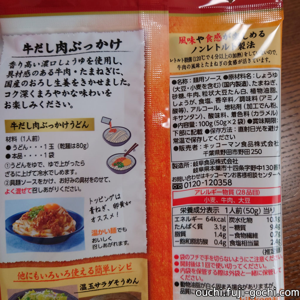 しょうゆ、たまねぎ、砂糖、牛肉、粒状大豆たん白、植物油脂、しょうが、食塩、香辛料/調味料、アルコール、増粘剤、酸味料、着色料