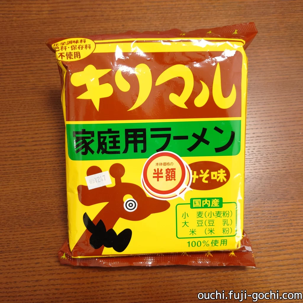 先日食べた キリマルラーメンしょうゆ味 の、今度は味噌味。さて、しょうゆと比べてどうか。
