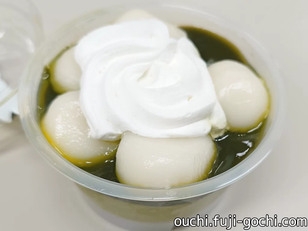 もちもちの白玉は例外なくしあわせを運んでくれる。上にもったりとしたクリーム、下にぷるんとしたゼリーで挟まれて、その多様な食感により食べ飽きない、つまり「無限にいけちゃう」と言いたいのだろう。暗所に置けば光りそうに鮮やかな緑色のゼリーとムースは、反面、味に嘘臭さがなく素朴な抹茶風味。甘ったるさを抑えたライトな味わいで、ペロリと食べられることからも「無限」なのかも知れない。さすがドンレミー、そつなくまとめてきた。
