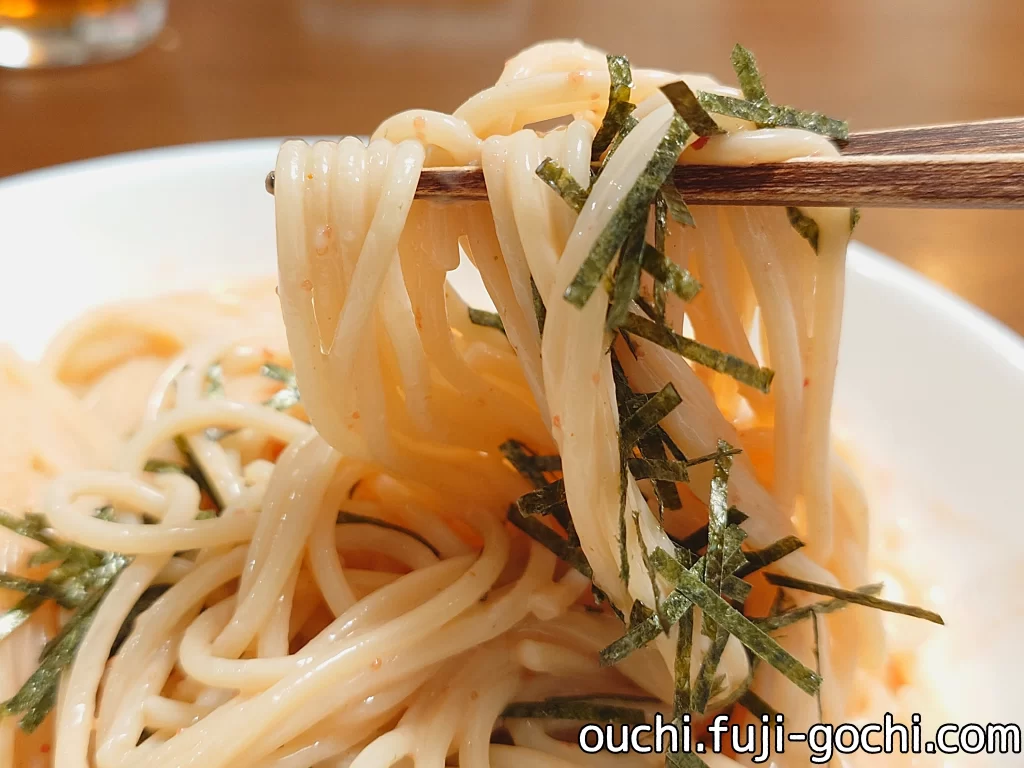 茹でたパスタに和えればもったりと重さが出る。明太子のピリッとした辛さがほんのりとあるが、味わいとしてはマヨ勝ち。おっさんになった今食べると正直刺激が足りない。追い明太子や、ブラックペッパーを振って食べたい。ハリ・コシのある麺よりも柔らかい麺が合う。うどんでも良いかも知れない。