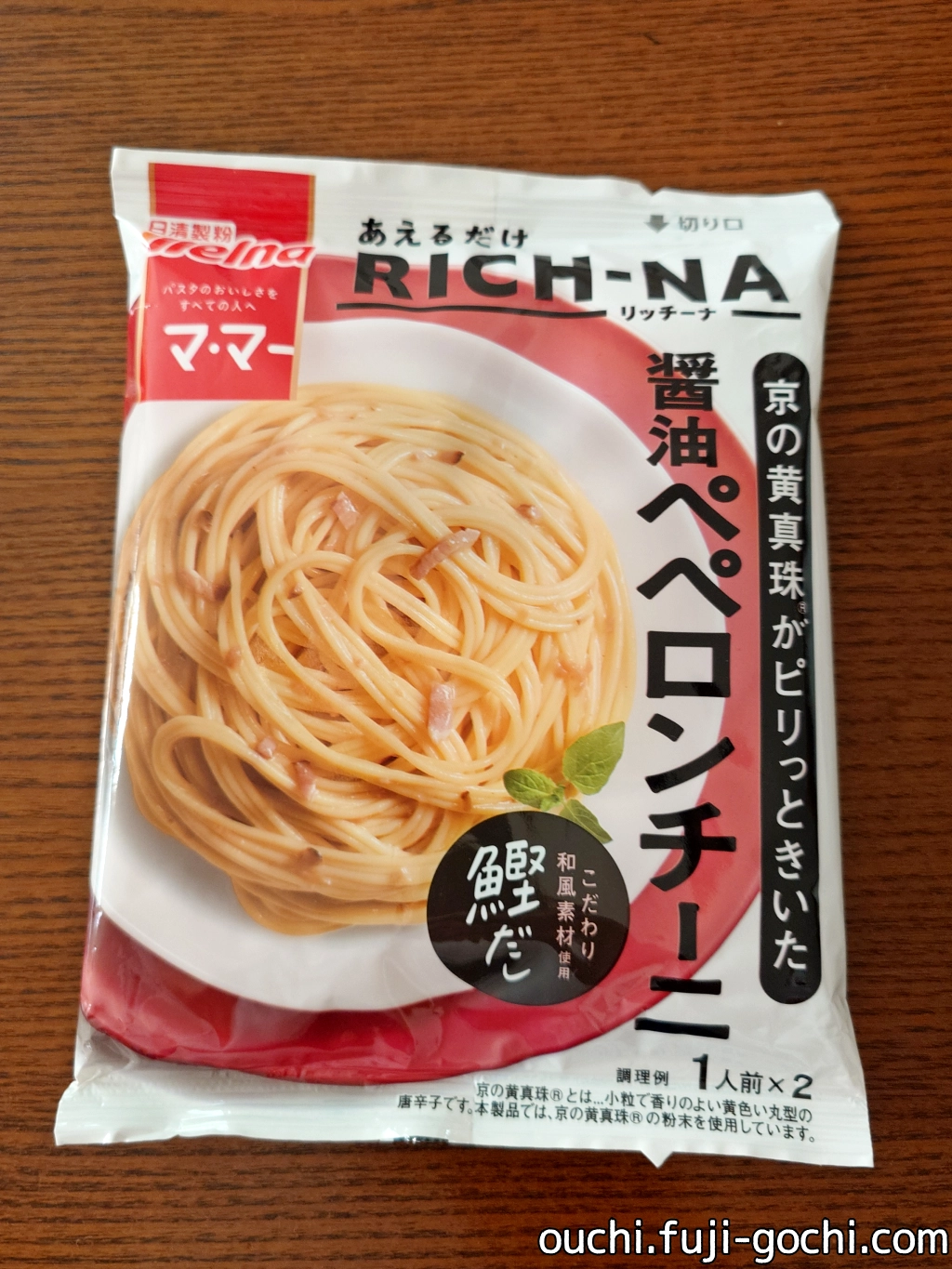 「あえるだけRICH-NA」は、そのソースだけを売る後発商品。1袋2食入りで4種類を展開。いずれも出汁や魚粉を使った和風テイストが売り。「いつものお馴染みメニューに和の世界観をプラスして、どこか落ちつく、やさしい味わい」とのこと。それにしても、タップリーノの次はリッチーナときた。