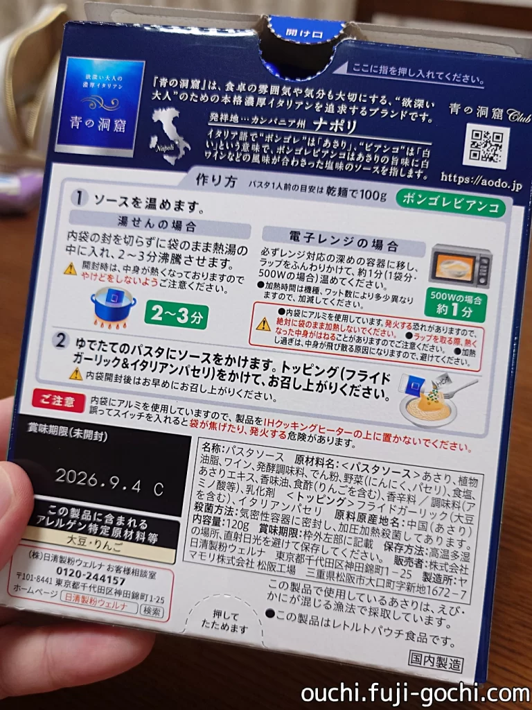 皆さん、こんにちは!今回、私のブログで初登場となる、とっておきのレトルトパスタソースをご紹介します。それは、日清製粉ウェルナの青の洞窟 ボンゴレビアンコ。