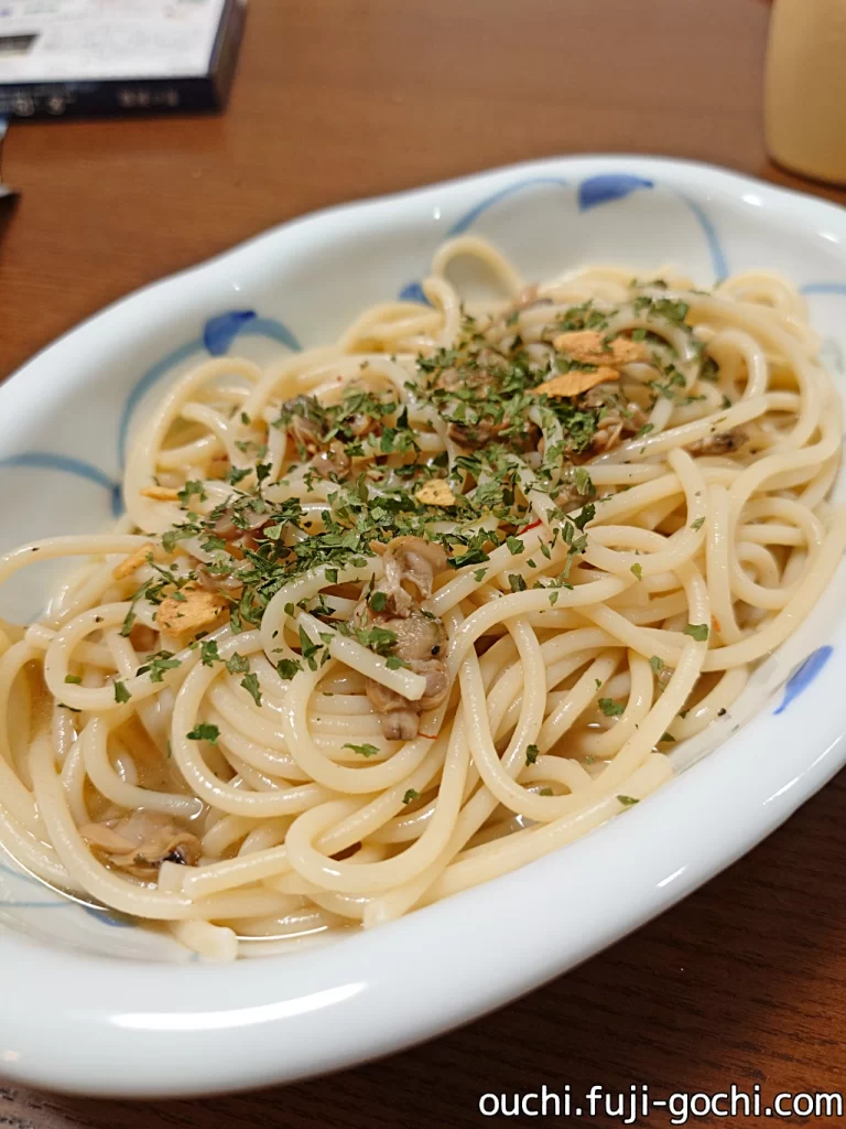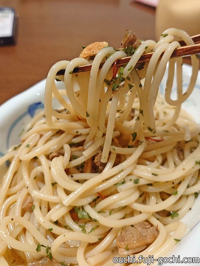 そんなステキなソースではあるのですが、個人的には塩味がやや強めに感じます。特にあさりの身がしょっぱい。きっと、あさりの旨味を凝縮しているからこそだと思いますが、プチトマトやキノコなどの具材をプラスして、あわせ食べることでバランスを取るのが良さそうです。